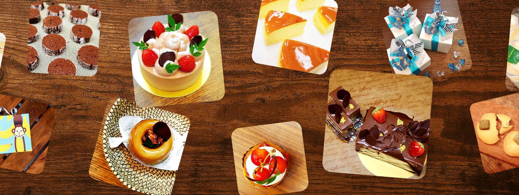 十字路の角に位置し、大きな柿の形をした窓と、明るいグリ ーンの扉が目印の小さな洋菓子店です。